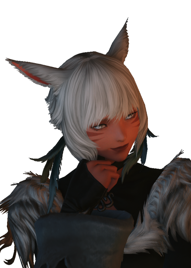 "References, curiously enough, include their tangential employment amongst the newly reformed Grand Companies of Eorzea, as well as a mercenary for The Circle of Knowing in the months before the Calamity. This work would bring them up into coerthas where they would watch in horror as the red moon descended bahamut burst forth from his allagan prison.""Varied word of mouth accounts from civilians to soldiers not far from the destruction in Coerthas describe a strong willed Viera protecting and guiding them to safety as the world burned around them. More accounts follow of their wanderings through the remains of the scorched landscape in search of survivors and the deceased with the hope of returning them back home."As the Grand Companies took over the work, they journeyed back up into the Coerthas Highlands to seek out the Ishgardian Paladins who survived. Together with what remained, they traveled across the rapidly changing highlands seeking out villages and hamlets, hoping to provide what assistance they could. Alphinaud Leveilleur's reports of the Dragonsong War made mention of Eyrie telling brief stories of the places they encountered. Villages buried beneath ice and snow in a matter of weeks. Finding homes with families huddled together, having all frozen to death. It was tiresome work and eventually they took their leave of the Paladins once more, returning back to Eorzea.""Eyrie tells it that they spent much of their time in Ul'dah working with Momodi of the Adventurer's Guild, trying their best to help the refugees and those most displaced by the Calamity. They often saw the worst Ul'dah had to offer over those years from both the citizenry and those in power.""It's not until five years after the Calamity that there officially arises the name Eyrie Kisne within the log books of the Adventurer’s Guild in Ul’dah. Momodi tells it that up until that point, Eyrie had never given her a name to record within the logs. Archon Thancred Waters recalled often seeing them spending time in the Quicksand taking on jobs and spending free time chatting with Momodi. He too never learned of their name.""At Momodi's recommendation due to their skill and talents, they made the journey to the Archer's Guild within Gridania. there eyrie's name appears within the logs of the Adventurer’s Guild within the city state--one step along the path that would lead them to becoming the fabled warrior of light. the defender of our star."