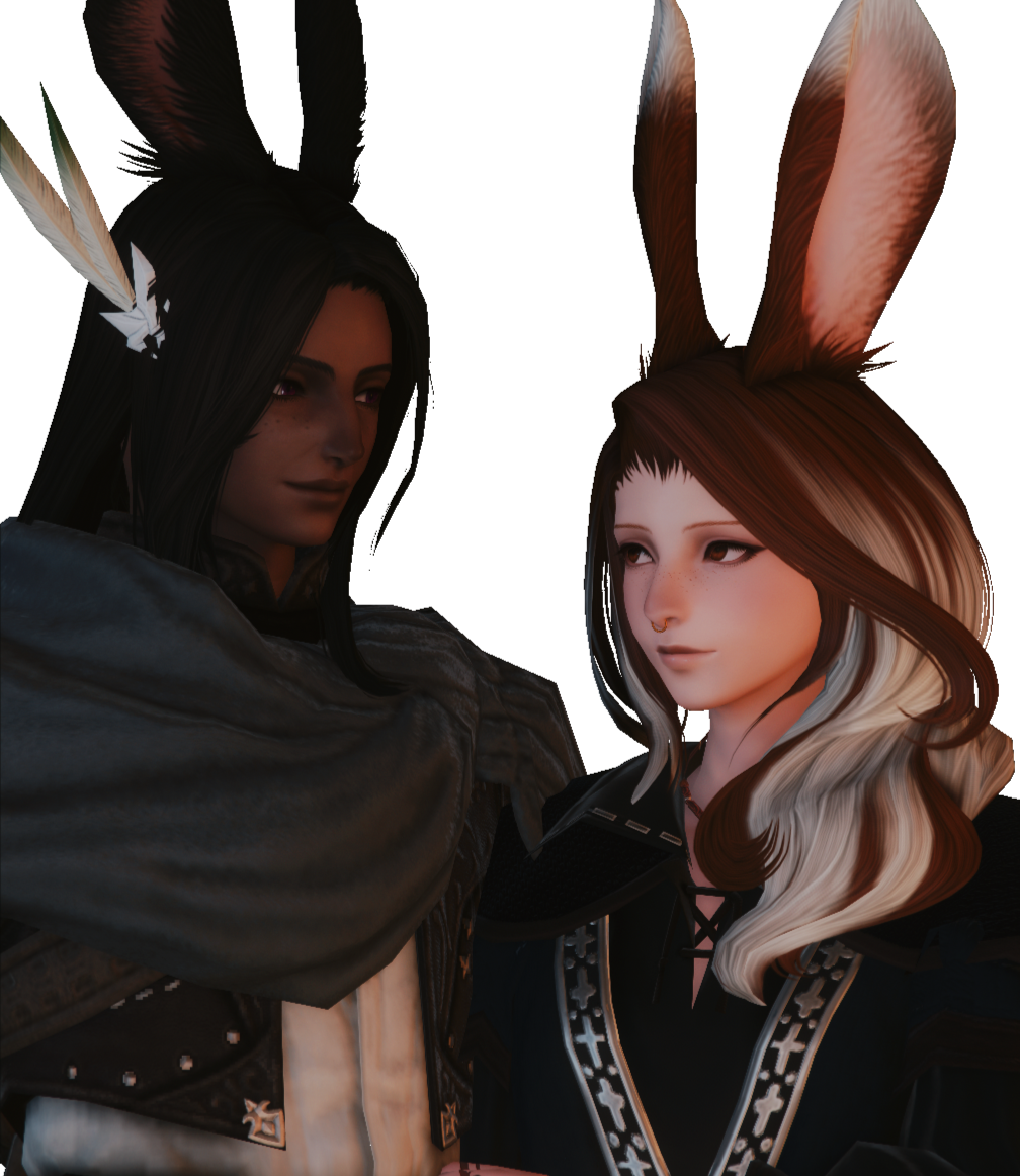 “While the deeds and exploits of the Warrior of Light are well known throughout Eorzea and the Star, a majority of Eyrie Kisne’s life prior to the Seventh Umbral Calamity remains unknown. Most of what is known has been gleaned by members of the Scions of the Seventh Dawn during Eyrie’s tenure within their ranks; while other accounts remain within word of mouth, or in paper documentation. Even as such, many closest to them are remiss to speak on matters of the Warrior of Light’s personal history.”“What little is known is discussed below:”“Eyrie was born into an unknown Veena village within the Skatay Range boarding Othard and Dalmasca over a hundred years ago. In reminiscing, they remarked that their village lived a semi-nomadic and isolated lifestyle, tending to various outposts deep into the mountains peaks and glacier valleys. This was born out of necessity compared to other Viera villages as a means of tending to their herds of mountain sheep. The village did have a stable main settlement most of the year within the deep upper valleys of the mountains, and only in the winter they would relocate below the tree line to temporary outposts.""They were raised alongside a fraternal twin brother, along with their two older sister's four children; they were all a rather rambunctious bunch, stirring up both trouble and help in equal measure. Eyrie was the quiet and unobtrusive one of the bunch--an avid observer rather than participator--even in their own childhood. Words came to them slowly, parsing their thoughts a difficult endeavor. It kept them at a distance--their slowness and uncertainty amongst others who moved and talked far more than them paralyzing.""Often as a result they preferred to let their brother speak for them rather than voicing their own thoughts. Letting him take responsibility for them as their older of the two.""Outside of time spent with their twin, they were ever close to their mother. So much so they would rather spend time with her than their fellow children. They had an avid enthusiasm in her work with medicines and white magic, albeit they were not blessed with later innate talent like their twin. Many of their fleeting memories of her are ones of her tender magic, her deep innate sadness--one they never quite learned the cause of--and her delicate embroidery work.""As the years crawled by and they grew older, they would spend more time with their father when he returned to shelter during the harsh winters, learning to wield bows, knives and lances--tools that would serve them well when it came time for them to join their father in the wilds. They excelled the most with the bow, and came to share their father's love of song and poetry, eventually marrying all three into what the people of Gridania and the Shroud refer to as a Bard.""They became a Wood Warder at the age of thirteen when they hit puberty as is both their choice and custom, and it would be a position they would hold for over a century. Tis a time in their life Eyrie speaks the least about and is remiss to touch upon. Once they spoke of the death of their father when they were eighteen--a great fall, caused by thick ice on trusted rocky hand holds. It would be an accident they nevertheless would take blame for, and would drive a wedge between Eyrie and their mother.""They would talk briefly after the events of the Final Days about having once taken a wife, and the pair had three children. One of whom died not long after her birth, the others now fully grown. Their eldest, a daughter named Aoife, resides within the city state of Ishgard. Their second eldest, a son named S'ver, still lives in the Skatay range. Neither have seen each other in many long years."